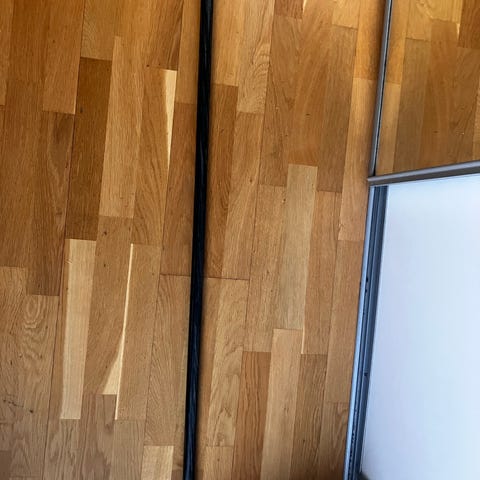 Har vært montert i leiligheten jeg nylig flyttet inn i. Har vært på vindu på med bredde på ca. 120-125 cm. Totallengde ukjent. Justerbar.