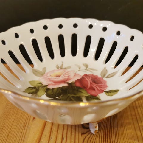 Søt eldre skål, til syltetøy ,el snop, 16x14cm, 4cm høy.,m gullkantet, litt slitt, kan sende ,kjøper bet porto,se mine anonser