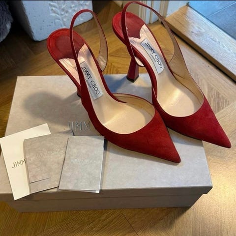 Pent brukte (tre ganger) stilettpumps fra Jimmy Choo selges da hæler ikke lenger brukes.