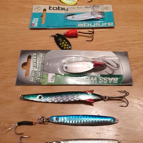 Den rød/sorte sluken på 40g og Mitralite Ragot 40g er fine til kastefiske fra land eller lettere båtfiske. Abu Garcia Toby 28g er i tillegg en meget god sluk til laks og sjøørret i vann, elv eller sjø.