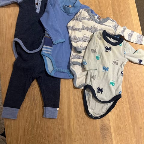 Klespakke med ullsett fra Name It, sett (body og bukse) fra Gullkorn, heldress fra Hust & Claire, body i ull fra H&C, strømpebukse i ull fra Silly Silas🤎