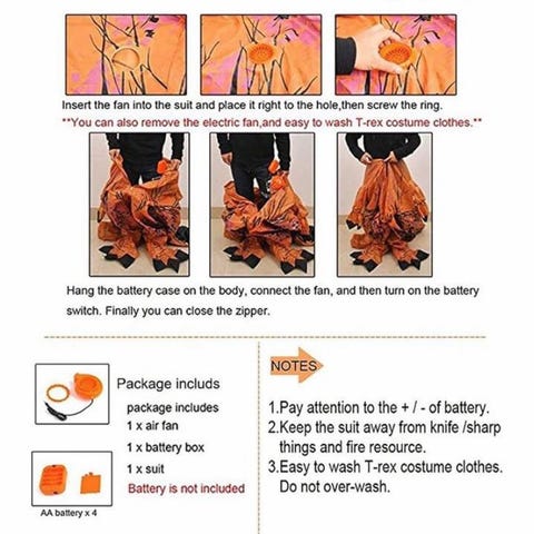 Ubrukt oppblåsbart dinosaurkostyme, kun tatt ut av pakningen. Kjøpt på PartyKing, nypris 1199,90kr.