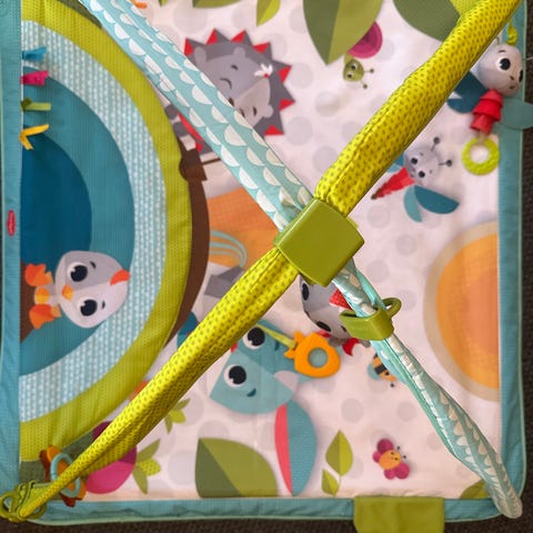 Lekegrinden selges med baller og en myk matte.