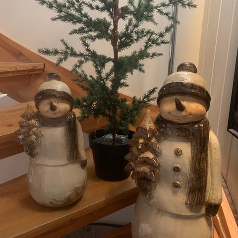 Jeg har hatt snømannen i «to juler». Første året ble den brukt 1 gang på en juleavslutning, i 2026 satt jeg den opp hos en uvitende bestefar(latteren stod i taket når han kom hjem og så giganten i hagen).
