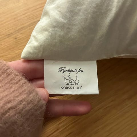 To stk pøllepute fra Norsk Dun selges til 400kr samlet. Aldri brukt, er som ny. Et putetrekk i mørkblå velourstoff fra Halvor Bakke kan følges med om ønskelig.