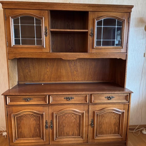 Hentet nylig dette fine vitrinskapet, men det er dessverre for stort. Gis bort videre dersom noen kan hente i Nittedal imorgen. Hvis det ikke hentes imorgen gis det videre til gjenbruksbutikk.