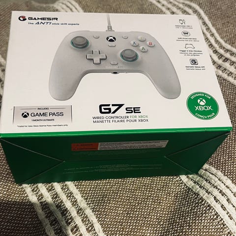 Har ikke esken til den. Ladekabel og kontroller følger med. Ikke Hdmi Kabel