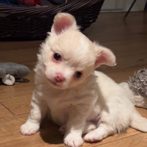 Vakker Kremfarget Chihuahua langhåret tispevalp søker sitt varige familie hjem.