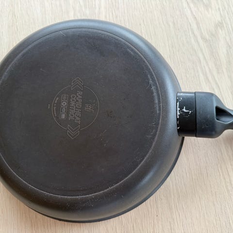 En stekepanne i rustfritt stål på 30cm i diameteren. Perfekt til all type matlaging. Selges da jeg fikk et sett med både 20cm og 30cm til jul hvor den store var for stor til studenthybelen min. Har kun vasket den med vann og klut for å fjerne støv.