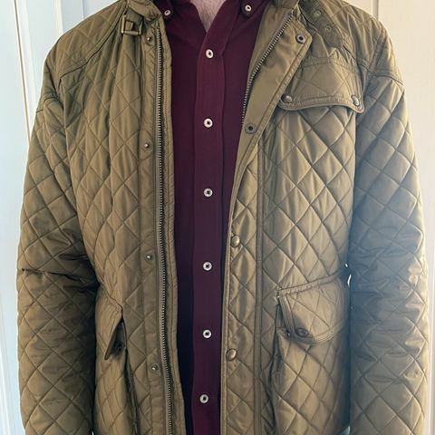 Vesten har glidelås foran og er laget med et lett, isolerende materiale som egner seg for utendørs bruk.