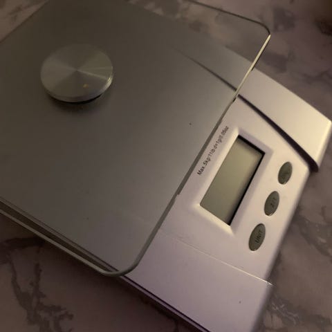 Funktion elektronisk kjøkkenvekt med funksjoner for enhetsvalg og på/av-knapp. Designet for nøyaktig måling av ingredienser i matlaging og baking. Pris ny : 392kr