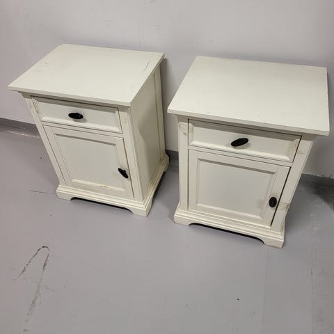 To nattbord fra Skeidar, lys grå, s. samlet kr 500,-