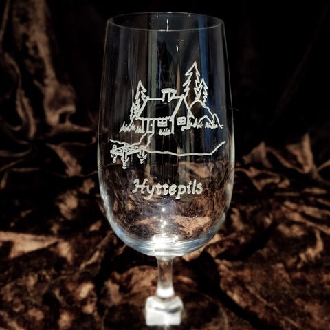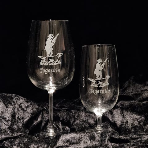 Vinglass med elg gravert
