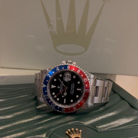 Submariner 16610 er kanskje det mest ikoniske uret rolex har produsert. Et skikkelig arbeidsjern som kan brukes daglig i år etter år uten at det svikter deg. Uret har arbeidshesten caliber 3135 urverk med 48 timers gangreserve og 31 juveler. Vanntett til 300m. Uret har fått en liten service, såkalt overhaling i fjor og går som det skal og holder tiden.