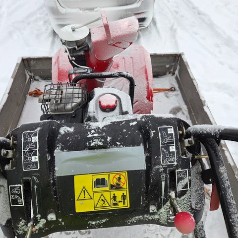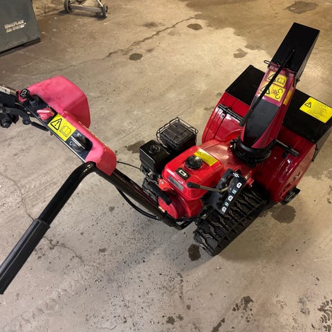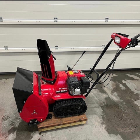 Honda snøfreser produsert i 2003 selges pga lite bruk. Jeg har hatt den i syv år, og har byttet motorolje hver sesong. Olje ble byttet nå 06.01, og drivreim byttet jeg i desember. Stått lagret i garasje. Testet å frese litt i går 06.01. Følger med instruksjonsbok, noen brytebolter, én glidesko og en tennplugg. Selges som den står.