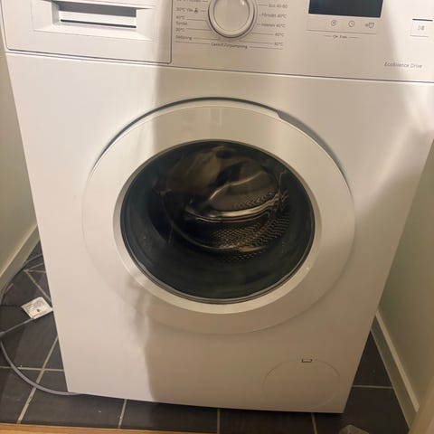 VASKEMASKIN GIS BORT MOT HENTING. Skal flytte til ny bolig der det er inkludert vaskemaskin og gir derfor bort denne:) Den har noen flekker øverst, men fungerer godt. Må hentes før 29.januar.