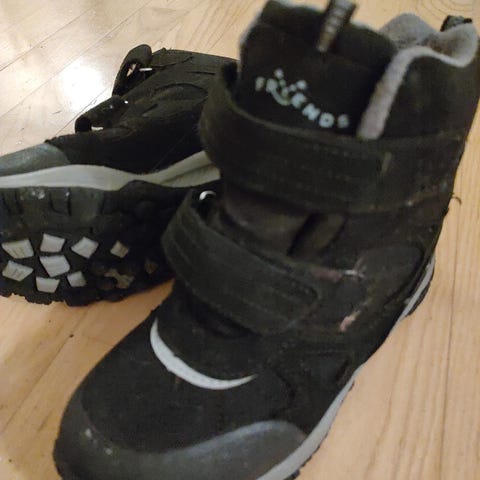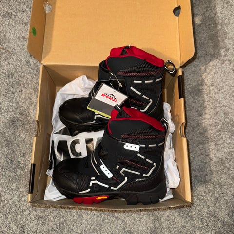 Mc kinley vintersko unisex i størrelse 31. Skoene er svarte med detaljer i rødt. De har solid såle og borrelås for enkel justering og god passform.