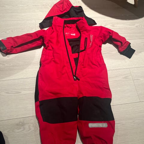 Nesten ikke brukt vinterdress i str. 1 år/ 80 fra Skogstad. Innside er varmt foret og det er reflekser på armer og bein. Unisex farge: sterk rød og svarte kontraster. Stilig!