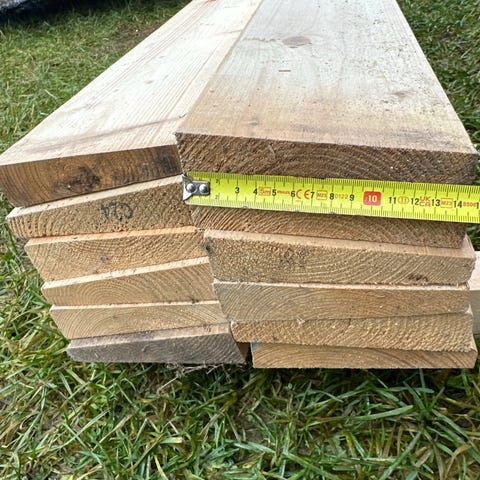 Bergene Holm cuimpregnert furu vannbrett med dimensjon 45x95 mm. 8 lengder, 31,5 meter totalt. 65 kroner per meter, selges helst samlet. Pris for alt sammen 2000,-