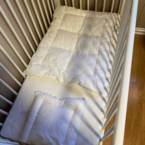 Kan skjæres på sidene hvis det skal passe en 90 eller 80 seng. Laget av heltre plate. Anbefaler å male selve hornet en gang til.