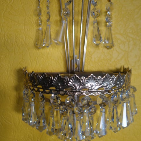 Lysekrone med flere rader av krystallperler som henger i en rund form. Passer for takmontering og gir et dekorativt lys i rommet.