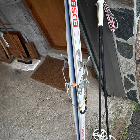 Åsnes ski 120 cm lengde selges med Rottefella-binding. Har en liten skade nederst på den ene skien (se bilde), men fungerer helt fint.