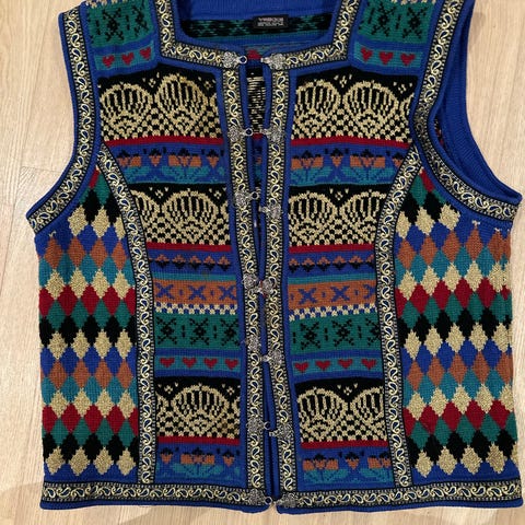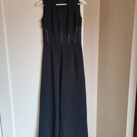 Selger en mørkeblå buksedress med fine detaljer og lommer. Str 36