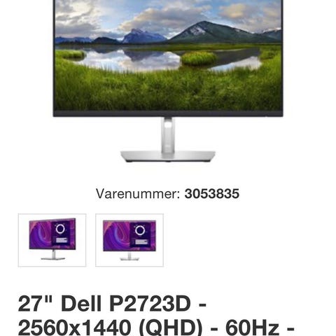 Selger en Dell P2720DC 27 tommers kvalitets skjerm i svært god stand. Dette er en pålitelig og profesjonell skjerm med skarpt bilde, behagelige farger og god ergonomi, ideell for hjemmekontor, studier eller kontorarbeid.