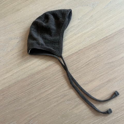 Nøstebarn barnelue laget av merinoull i blå farge. Passer til barn i størrelse 86/92. Unisex design som kan brukes av både gutter og jenter. Selges for 100kr, kan sendes med fiks ferdig.
