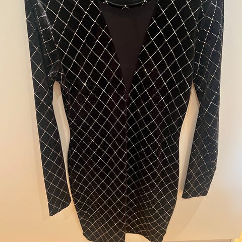 Svart penkjole med innsving fra Amisu. Glidelås i siden. Str M. Lengde skulder og ned 93 cm. Omkrets fra 74 til 88 cm. Veldig elastisk. Som ny og ingen skader. Sendes mot porto.