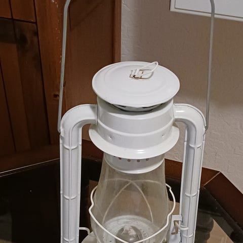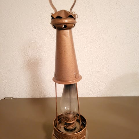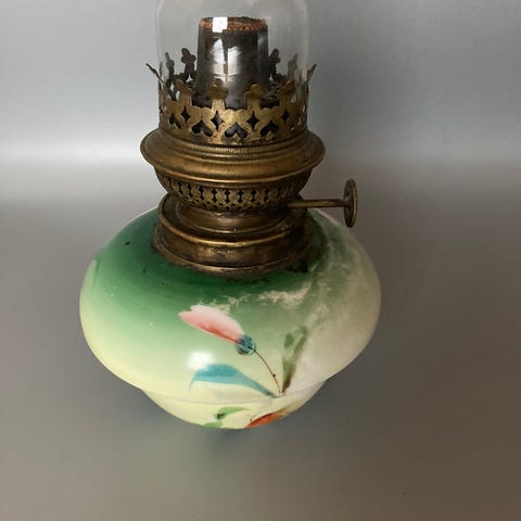 Parafinlampe I glass, med brenner, men uten brennerglass og veke.