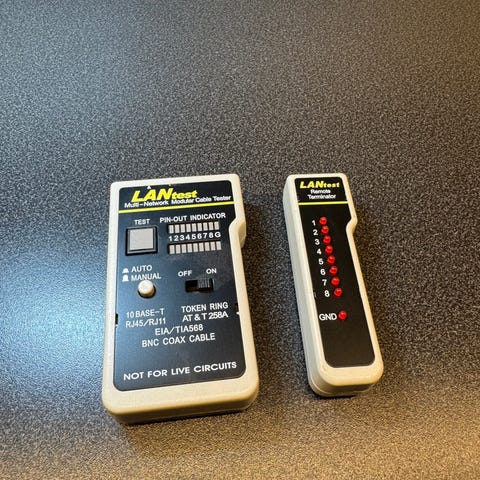 Selger et komplett og funksjonelt LAN‑tester + multimeter‑sett.