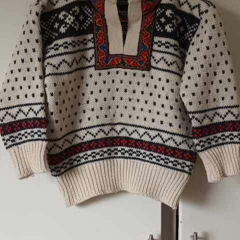 Genser kjøpt på Langedrag - nyprisen er over 500kr, om ikke 700. En liten flekk på lomma fremme.