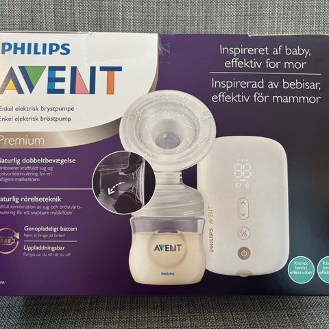 Selges elektrisk brystpumpe med digital skjerm som kan plasseres i bh. Ingen ledninger. Går på batteri og fungerte bra.