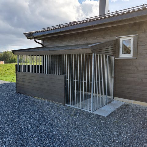 Selger denne hundegården med dobbelt hundehus. Er tak på det nå men platene på det er gamle og sprøe og bør nok evt byttes. Selger i utgangspunktet hundegården med hundehus men taket kan selvfølgelig følge med hvis ønskelig. Må hentes og demonteres selv.
