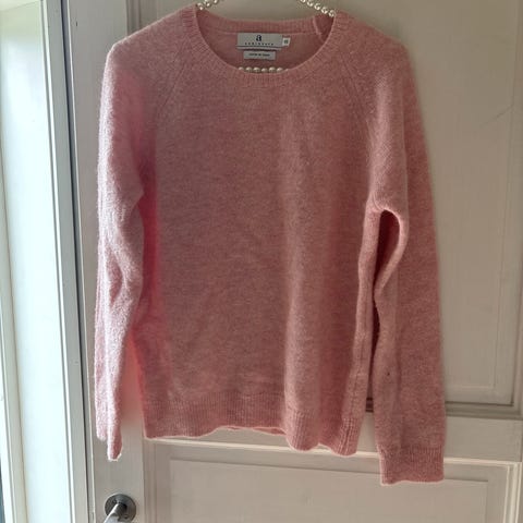 Arnie Says Fat Fiona genser i størrelse L. Genseren er beige og laget av en blanding av 70% Baby Suri Alpakka, 22% Polyamid og 8% Fin Merinoull. Passer for kvinner.