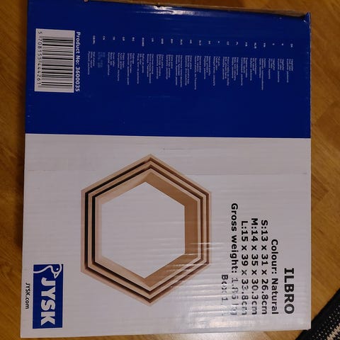 Hylle montert opp, men ble for stor der den skulle henge. Selges derfor til sterkt redusert pris.