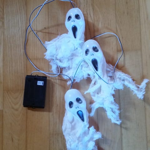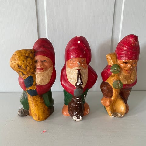 Vintage julepynt. 3 søte små nisser som klatrer i en stige av hamp/ jute.