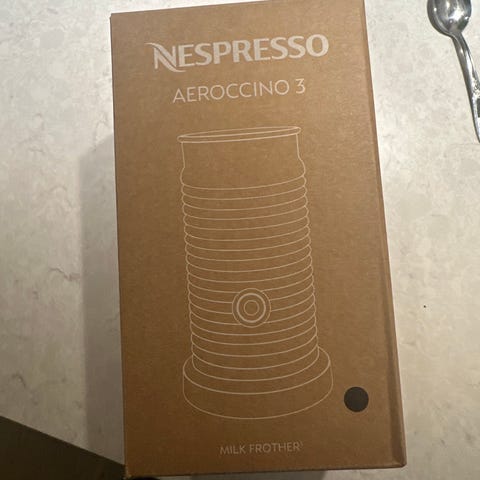 Helt ny og uåpnet Nespresso Aeroccino 3 melkeskummer i sort farge. Melkeskummeren er designet for å lage skummet melk til kaffedrikker. Produktet har en kompakt størrelse og enkel betjening.