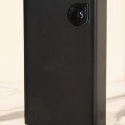 Powerbanken fremstår som funksjonell og pent brukt, og holder godt på strøm. Digital prosentvisning viser gjenværende batteri.
