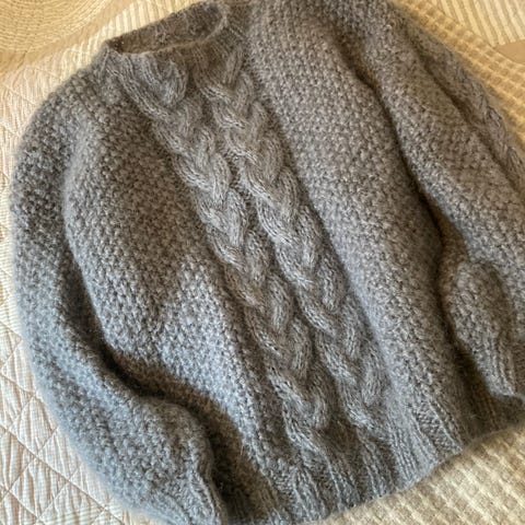 Min-mote genser strikket i orginalgarnet Lieve fra Monidal. 90% kid mohair. Garnpris 1050kr.