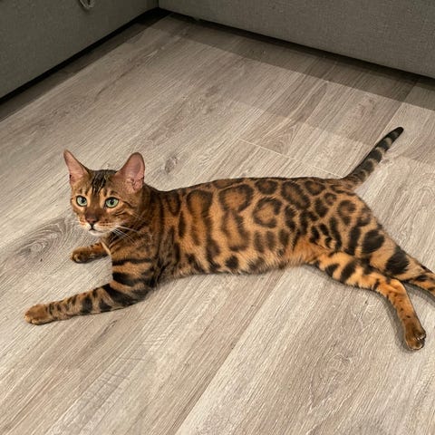 Med tungt hjerte har vi bestemt å finne et nytt hjem til fine Leo. Han er snart 4 år og en vakker skogskatt blanding. Vi har en hund som er veldig voldsom og vi ser at katten mistrives. Tror han er litt for snill mot hunden og har ikke satt seg i nok respekt, så hunden vår vil " leke, jage, løpe" etter stakkars Leo hele tiden. Det har resultert i at han har trukket seg litt tilbake og får ikke kost like mye som han vil og pleier for han orker ikke hunden. Vi har håpet at situasjonen ville roe seg, men det har den ikke. Om vi derfor finner et passende hjem, kanskje det vil være det beste for Leo slik at han får den roen og kosen han er vant til. Han er vant til å være ute, kan ikke bo i leilighet. Han er kosete, snill, matvrak, vant til hund og små barn. Han er ikke kastrert, men holder seg alltid i nærheten, har faste rutiner og har aldri vært i slåsskamp.