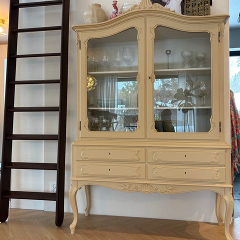 Vurderer å selge dette vakre skapet. Usikker på alder. Litt skrap nederst der døren går igjen men syntes ikke mye