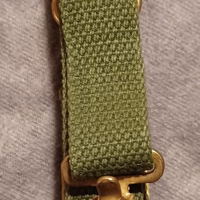 Britisk produsert web-reim for Sten Gun maskinpistol. Sten Gun var den mest brukte maskinpistolen av engelske styrker under 2. verdenskrig. Maskinpistolen ble også brukt norske styrker i England-Skottland under krigen. Betydelige mengder Sten Gun ble også levert til den norske motstandsbevegelsen (milorg -hjemmestyrkene) under krigen, både gjennom fallskjermslipp og sjøveien. Etter krigen ble Sten Gun maskinpistol brukt av det norske forsvaret. Reima er i brukt, men i bra stand. Produsert i 1944.
