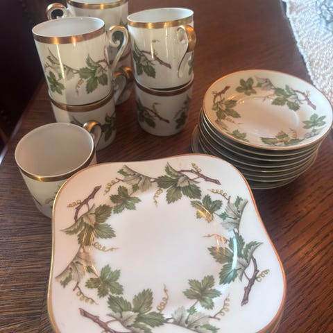 Gratis frakt! Hackefors Porslin blåblomstrende porselensfat med dekorative kanter og gullfarget detaljering. Fatet har en rektangulær form med håndtak i endene og blå blomsterdekor på hvit bakgrunn.