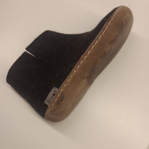 Fine sorte tovede ulltøfler fra Glerups med skinnsåle. Pent brukt, selv om skinnsålen er litt glattere når den er brukt. 😊