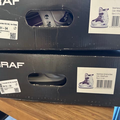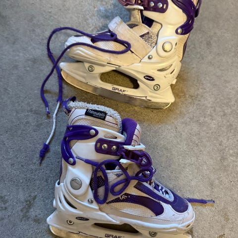 Andre skøyter for barn i størrelse 31. Skøytene er hvite med rosa detaljer og har justerbare spenner for god passform.