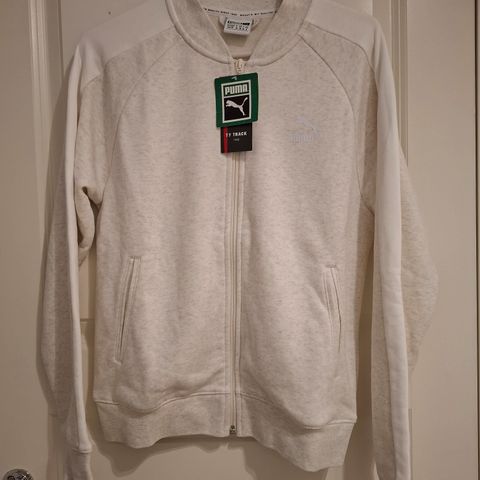 Knallkul Puma trackjakke, str S. Med lommer og kule detaljer. Knapt brukt, som ny. Sjelden og spesiell, til sport og hverdags. Selges 150,- Hentes på Fevik eller sendes mot frakttillegg.