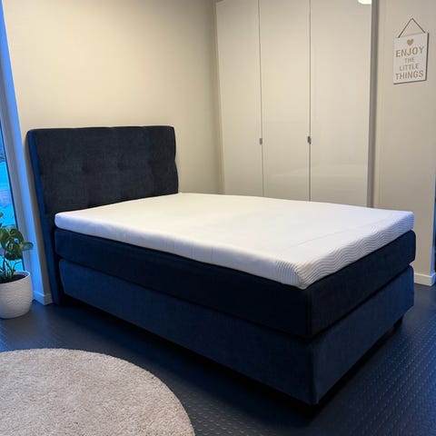 Selger en hel og pen kontinentalseng fra Jensen. Sengen har vendbare madrasser slik at du selv kan velge om du ønsker medium eller fast, eventuelt også en side av hver.
