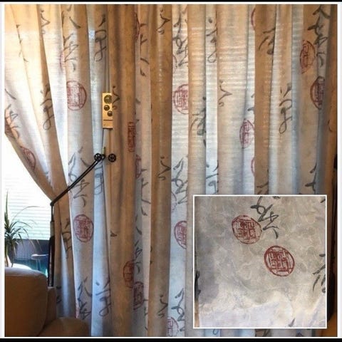 Retro-Rester etter gardiner/kapper sølv/lyse-grå/sort/burgunder med "Kina" tegn